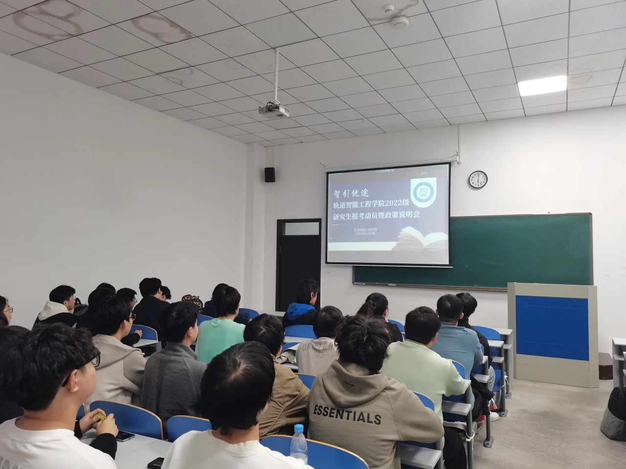 为帮助学生了解当下考研形势,全面贯通考研政策,提升就业前景。11月8日,我院于旅顺口校区会议中心A107和腾讯会议线上线下双结合开展“智引优途”轨道智能工程学院2022级研究生报考动员暨政策说明会,会议由我校研究生工作处副处长陶玉萍主讲,2022级百余名学生参会,会议由学院党委副书记邓晗主持。