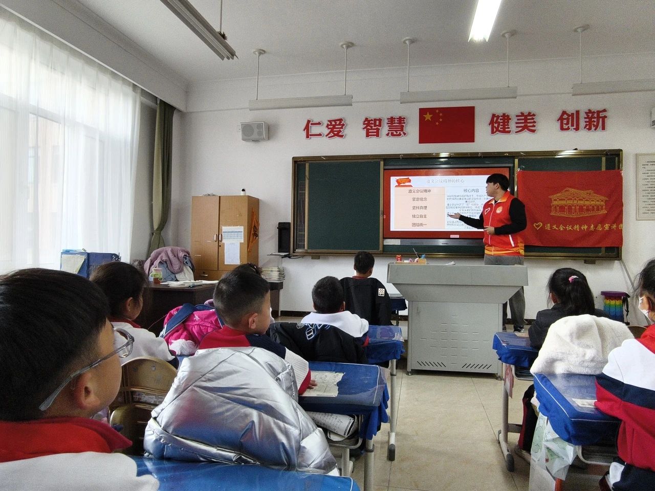 正值第39个国际志愿者日来临之际,近日,“红途”志愿宣讲团再次出发,来到了旅顺开发区伯阳小学。此次宣讲围绕“遵义会议精神”、“沂蒙精神”以及“关爱儿童安全”三大主题展开,旨在将红色文化的精髓与关爱儿童成长的理念相结合,为孩子们带来一场别开生面的精神盛宴。