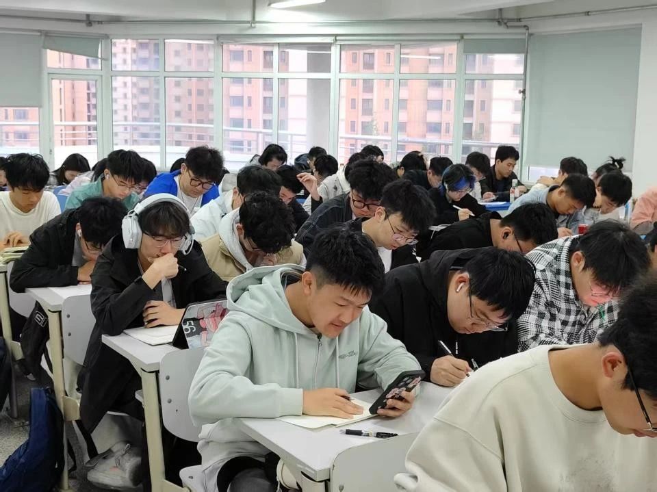 教室内,同学们专注审题、静心作答,通过独立推导行列式变换、求解线性方程组等过程,以考促学,把脉学情动态。通过对答案的分析总结,系统梳理课程重难点,及时查缺补漏。