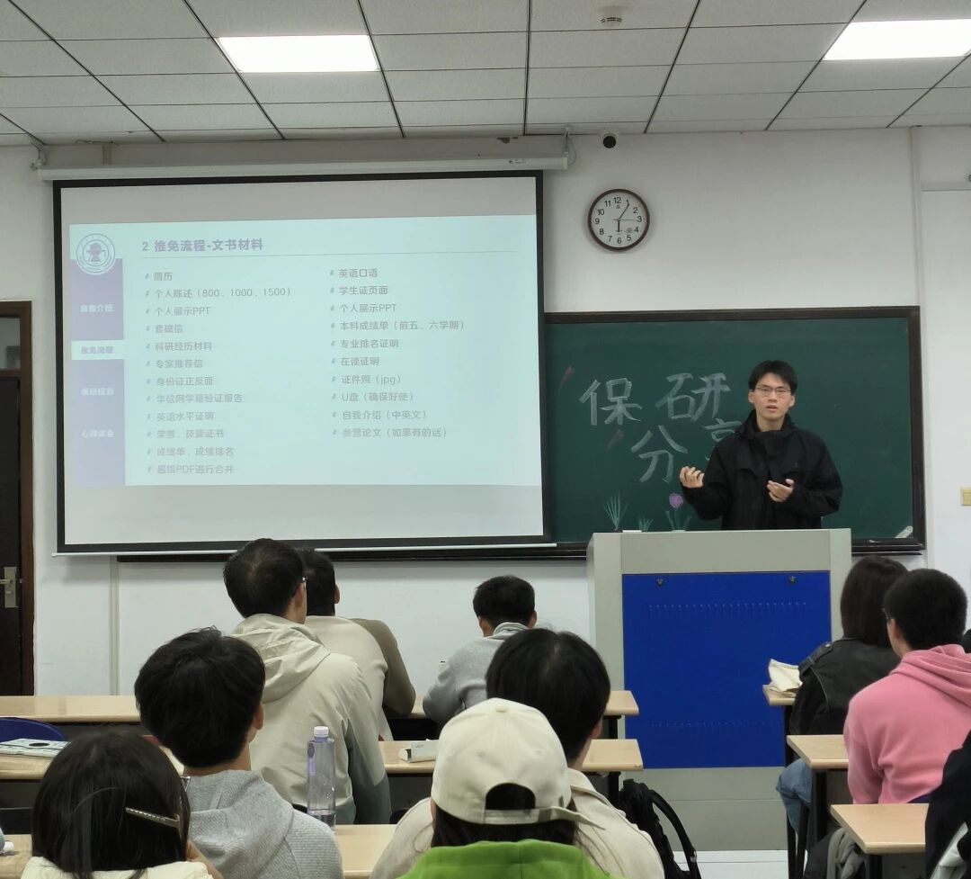 为助力我院有推免意向的学生明确保研路径、提升备考效率,我院特举办保研经验交流会,本次会议由学习部副部长臧景灏主持,邀请学生代表覆盖计算机、软件、通信等专业,均以优异成绩保研至国内顶尖院校,为我们分享实操经验与策略方法。