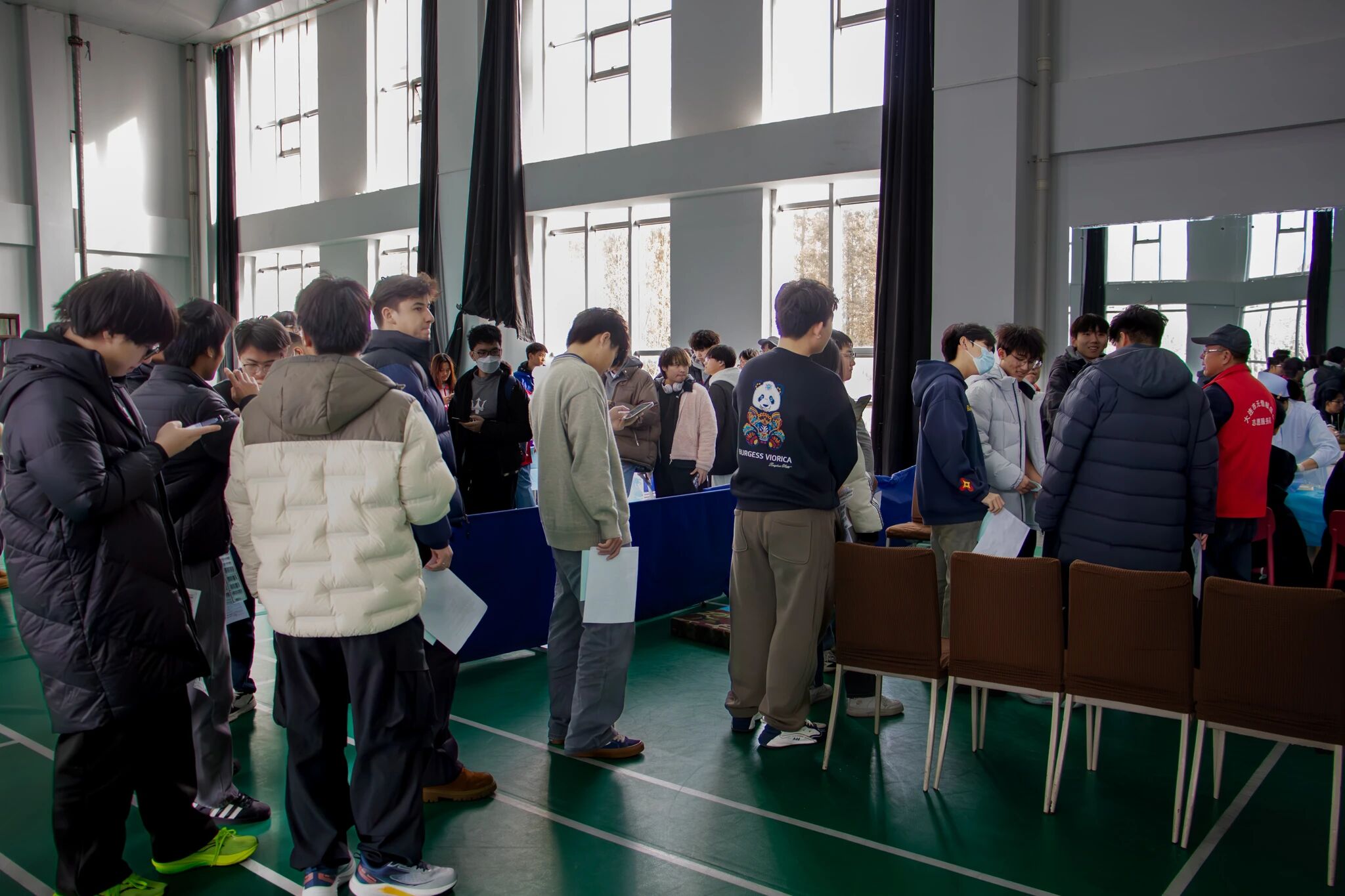 活动当天,室外寒风凛冽,会议中心多功能厅内秩序井然。医护人员与志愿者提前完成场地布置,明确分工负责各环节工作,保障献血流程高效推进。学院学子踊跃参与,既有首次献血的同学,在紧张中坚守奉献初心;也有多次参与的 “老面孔”,熟练配合完成各项流程,并主动鼓励身边同学。