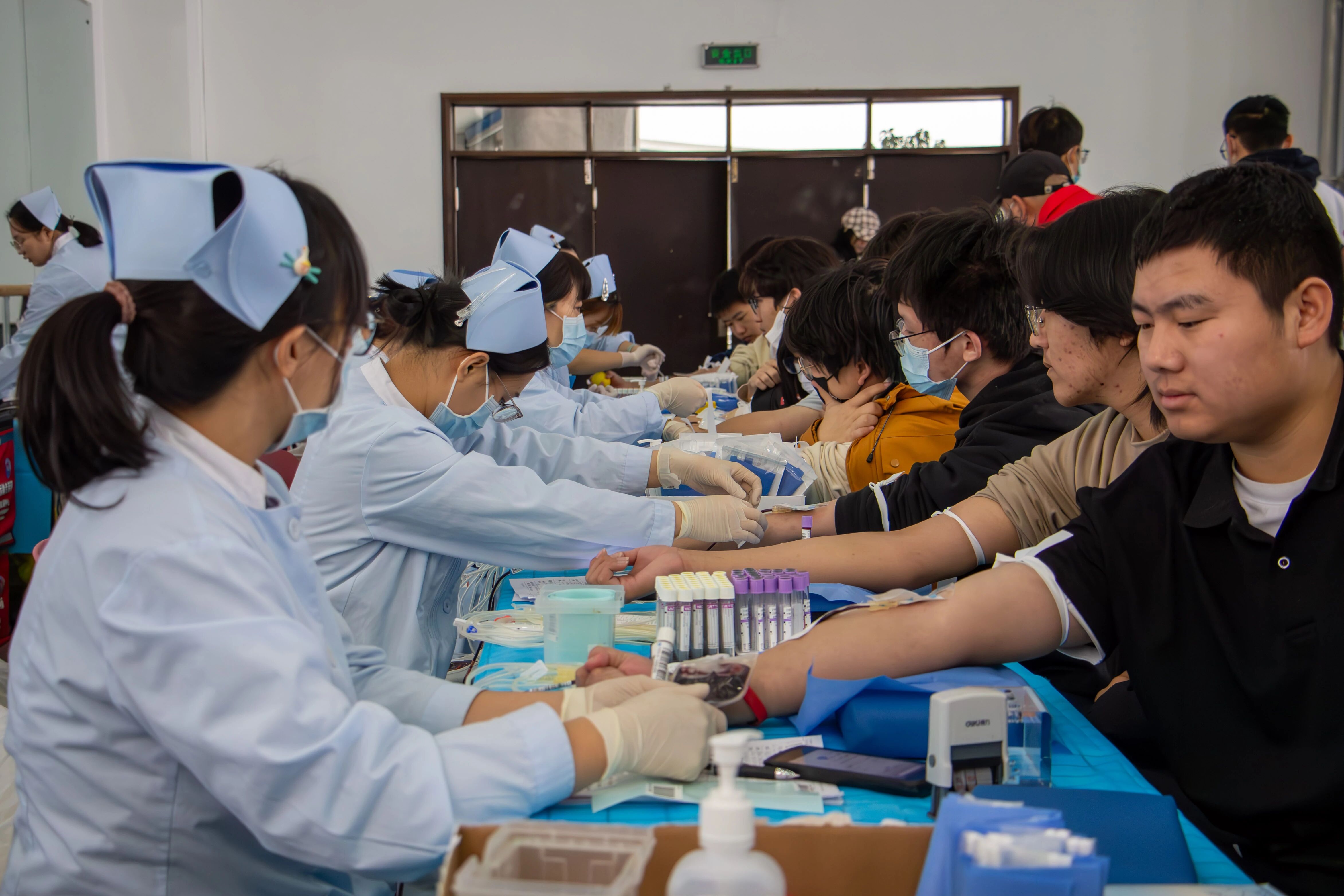 医护人员会采集献血者少量血液样本,开展血型、血红蛋白等项目的快速检测,确保捐献血液符合安全标准。