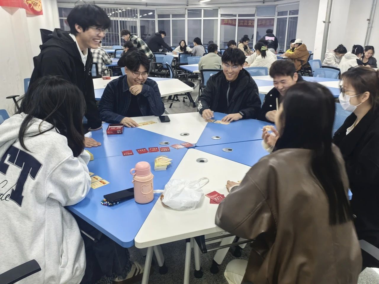 在志愿者的精心引导下,紧张刺激的桌游环节有序展开。多个重要历史事件的画面在学员们的脑海中渐渐清晰,一条伟大的历史长河随着游戏的进程缓缓铺开在学员面前。游戏内容丰富多彩,充分考验了学员们对百年党史的掌握程度。