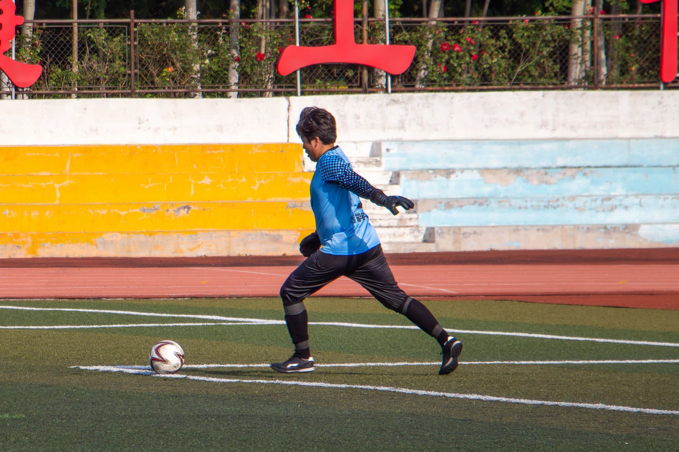前锋球员屡次凭借速度与技术撕开对手防线,制造出极具威胁的进攻机会,一次次冲击着对方的球门。