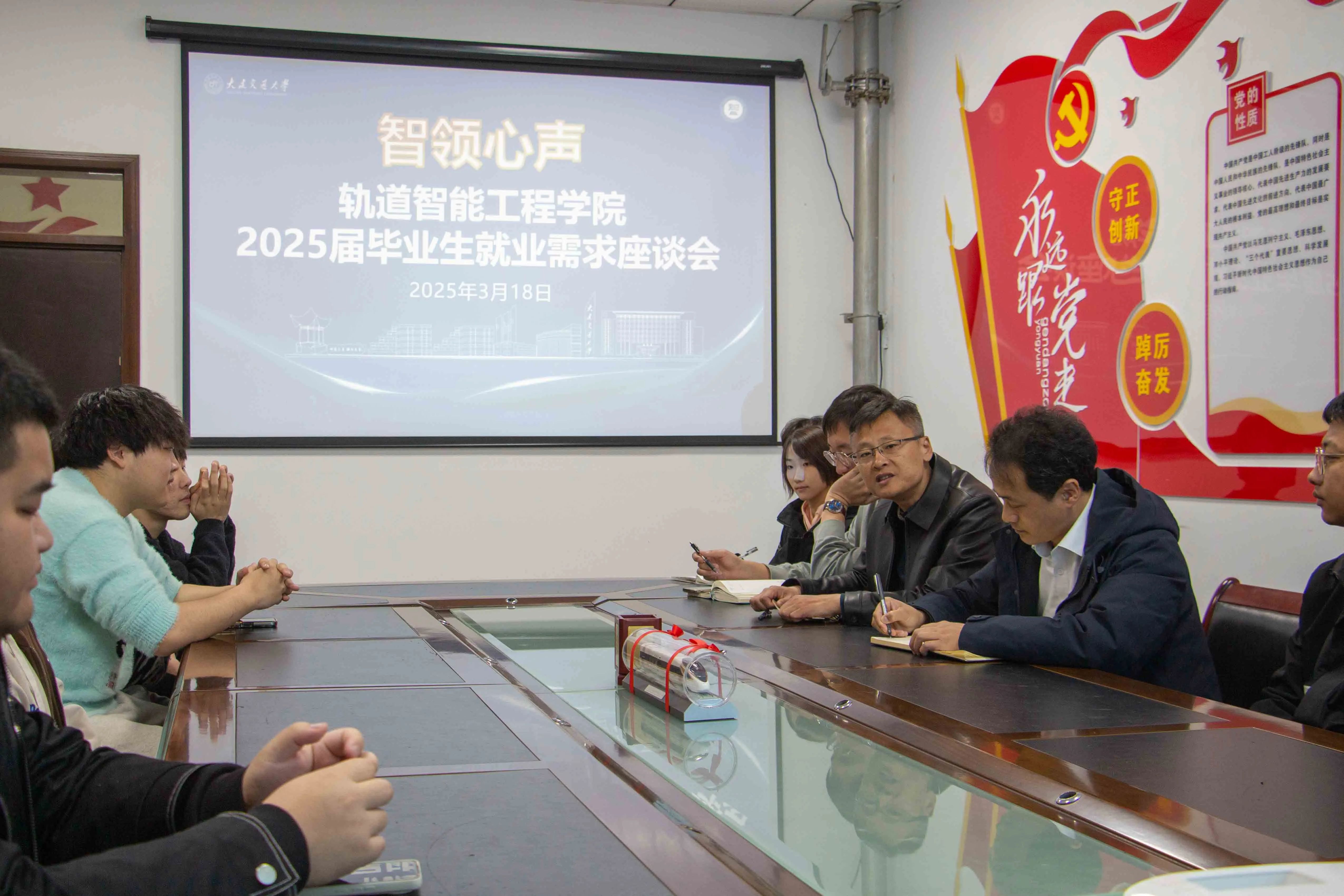 为摸清就业形势,了解学生就业需求,以点带面,提高学生就业质量,3月18日下午,我院于A419-2会议室召开2025年春季学期本科毕业生就业座谈会,党委书记陈少华、党委副书记邓晗、本科生毕业班辅导员及各班级学生代表参加了座谈,会议由党委副书记邓晗主持。